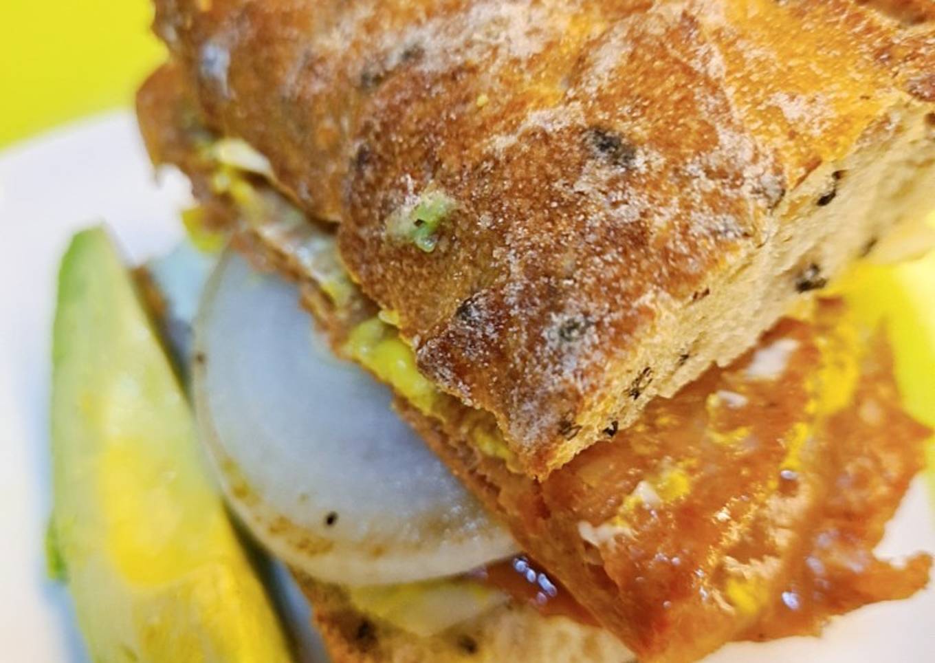 - Cortar el bolillo por la mitad, a lo largo. Quitar algo de migaja y calentar en comal o sartén, por ese lado.