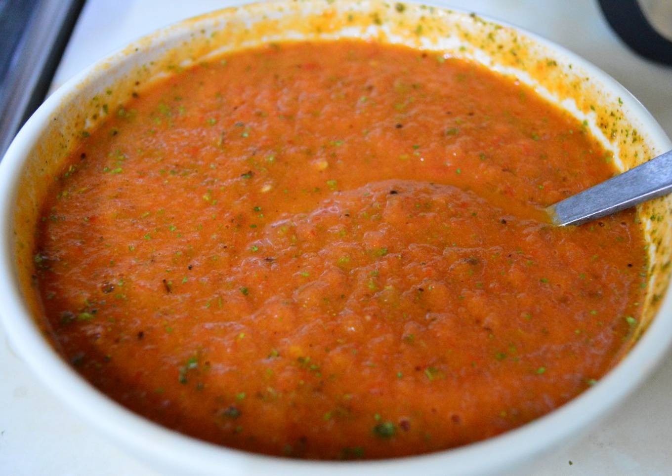 - En caso que la salsa le falte color rojo, se le puede agregar al puré de tomate 2 champiñón, y licuar para que se mezcle bien