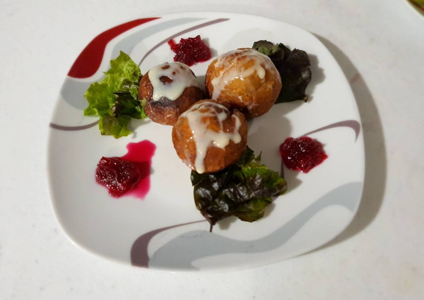 Bolitas de plátano, rellenas de mermelada de betabel
