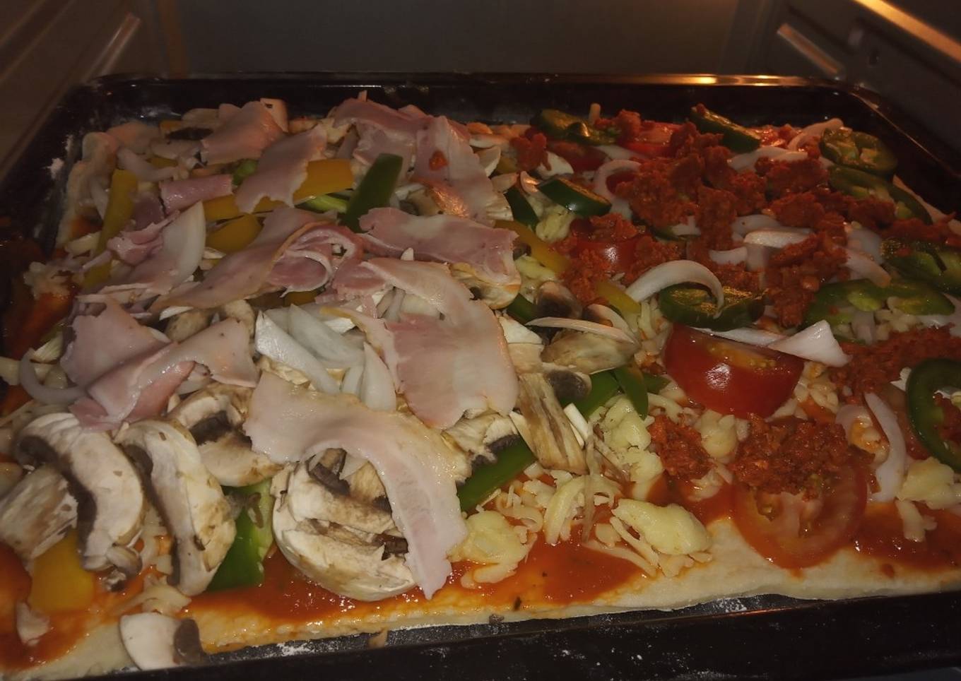 - Estiramos la masa y ponemos los ingredintes que queramos horneamos durante 15 minutos por 18 grados