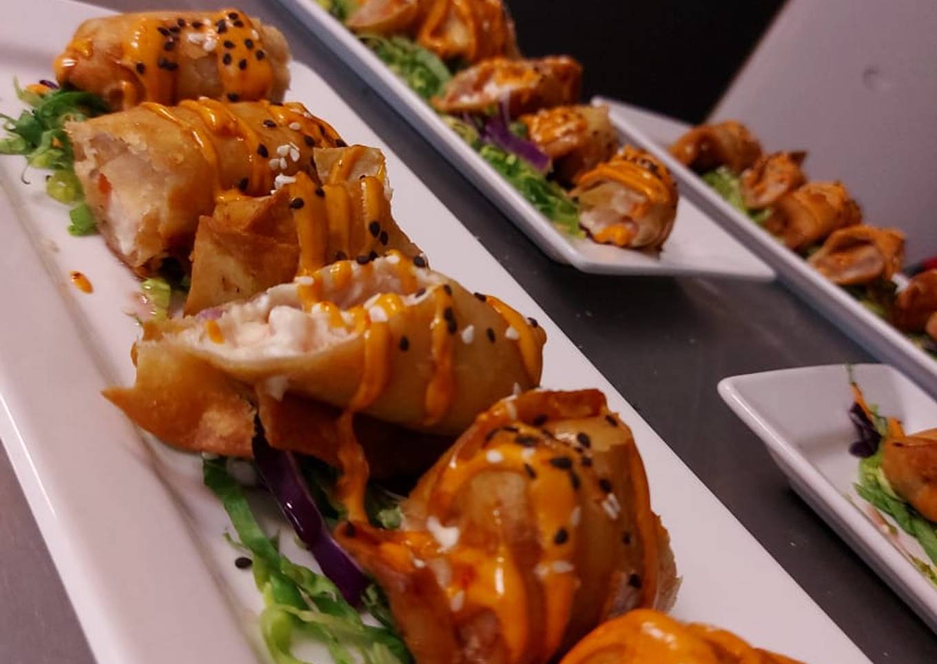 Rollos de camarón con queso crema philadelphia sazonado con aceite habanero y aceite de oliva