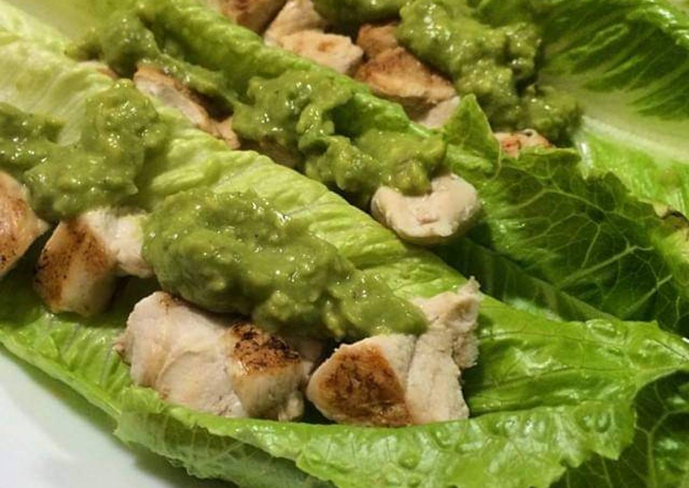 - Colocar cubos de pechuga sobre la lechuga, y agregar la salsa de guacamole.
