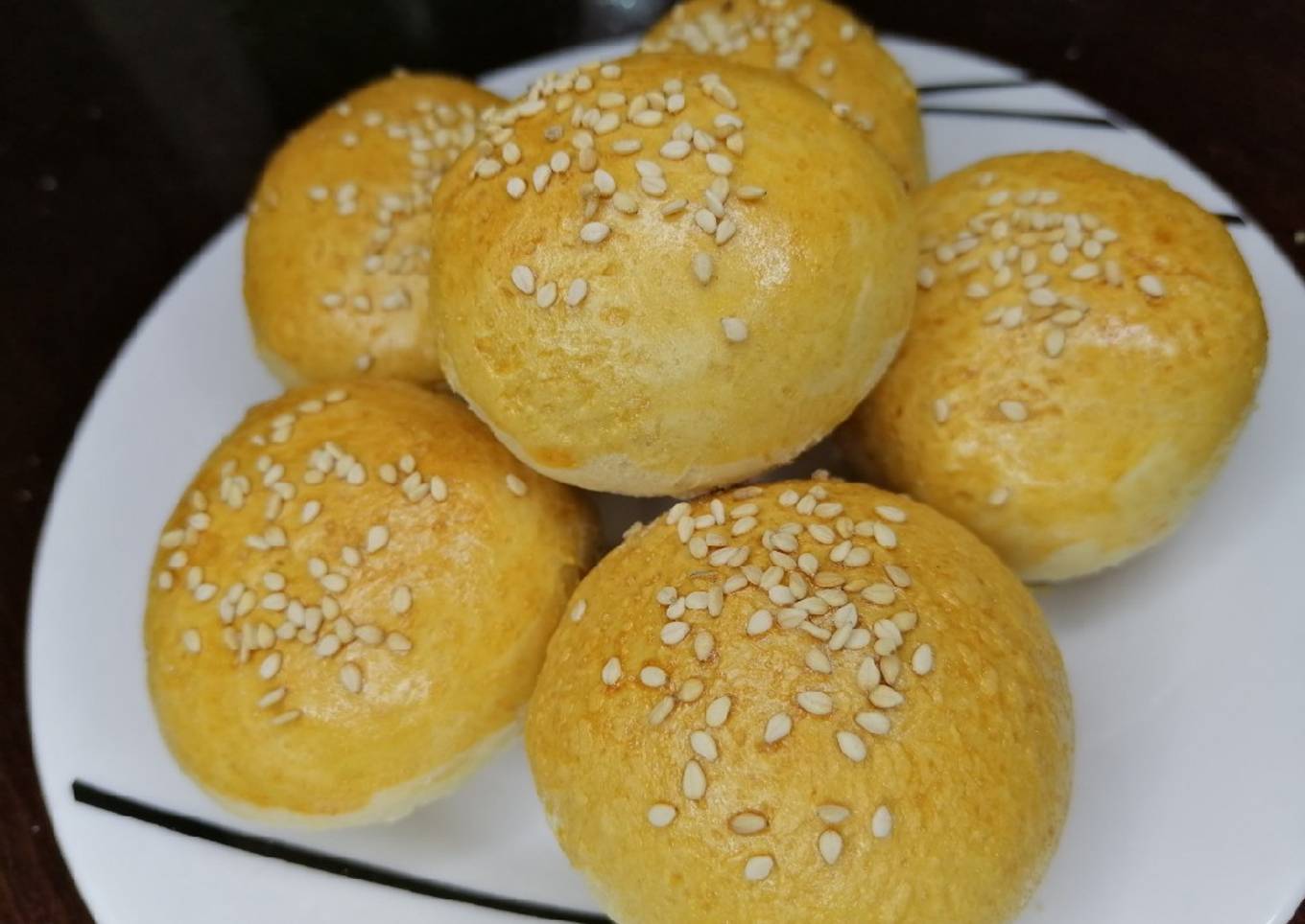 - Poner mantequilla y un poco de harina en la charola para evitar que se peguen o papel encerado y colocar encima los bollos, barnizar con huevo y decorar con ajonjolÃ.