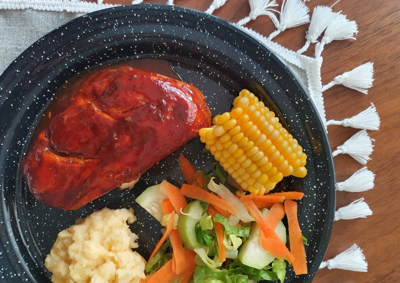 As for the number of servings that can be served to make Pechuga de pollo con BBQ al horno is 3 personas. So make sure this portion is enough to serve for yourself and your beloved family.
